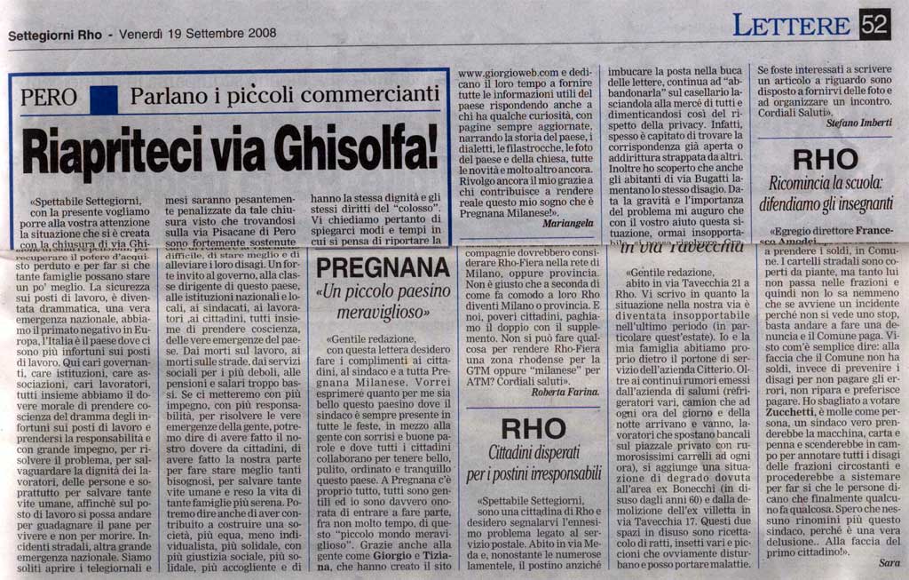 La stampa parla di noi Lettera di Mariangela apparsa su Settegiorni il 19 Settembre 2008 nella pagina delle Lettere