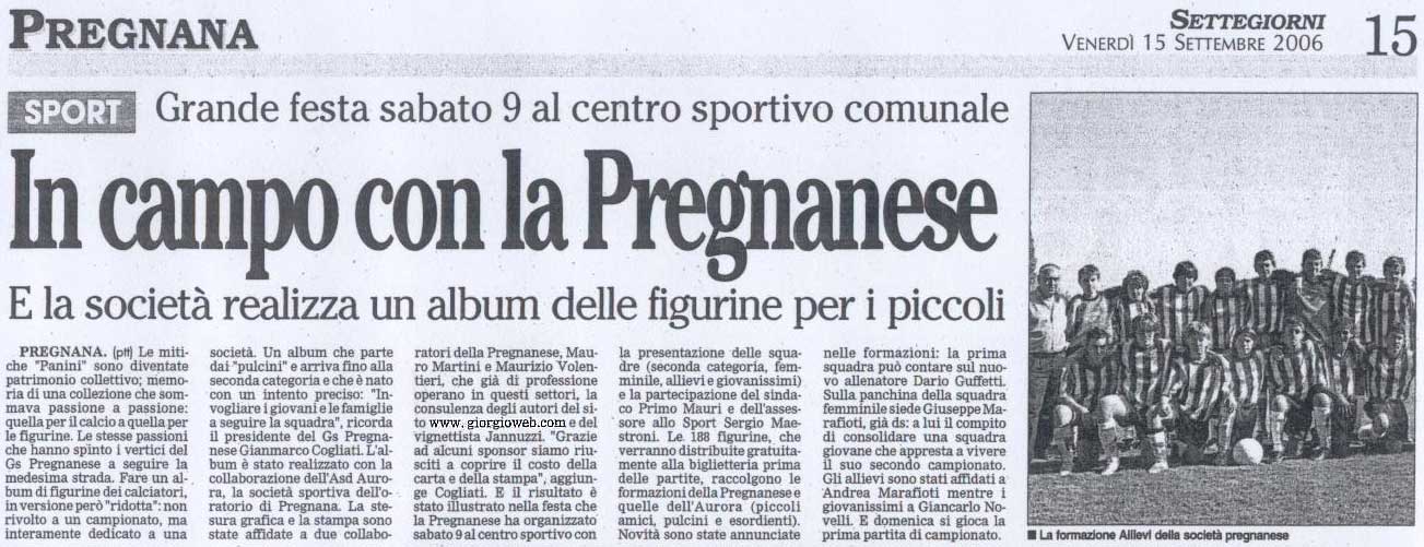 | Articolo apparso su settegiorni il 20 gennaio 2007 nella pagina dedicata al Pregnana | ||