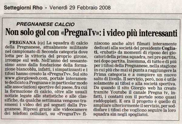 | Articolo apparso su settegiorni il 29 febbraio 2008 nella pagina dedicata al Pregnana | ||