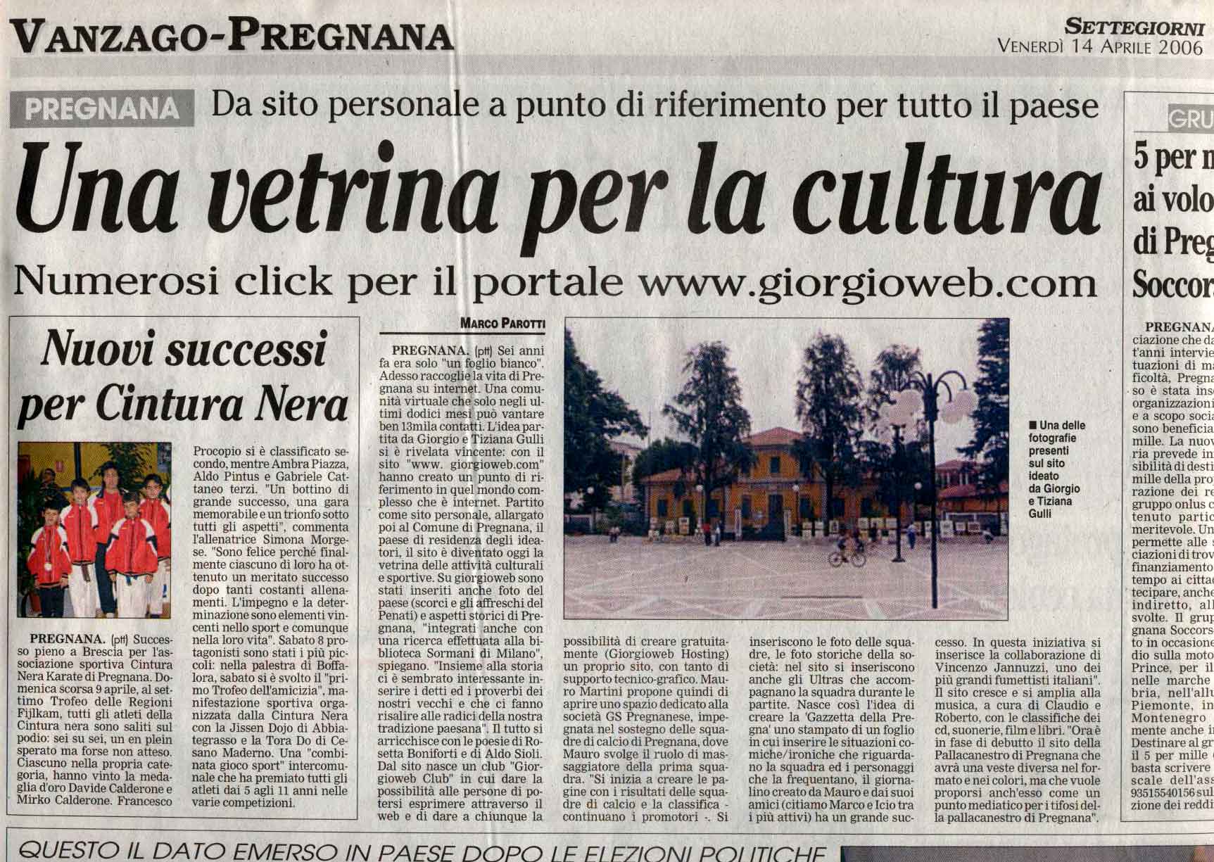Prealpina il giorno venerdì 7 Aprile 2006 nella pagina del Rhodense