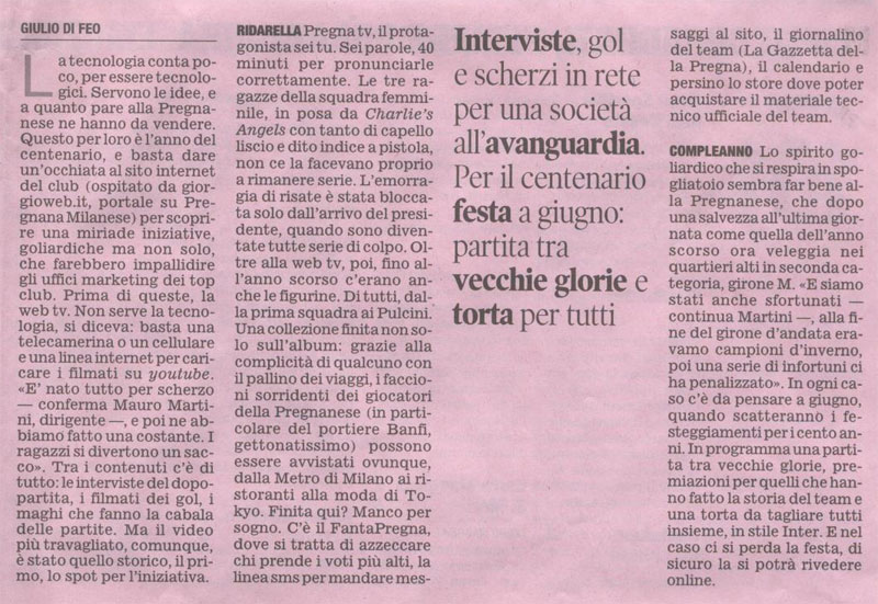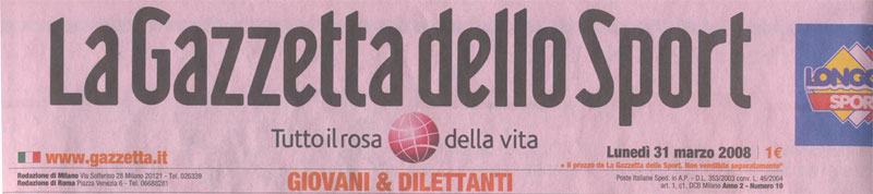 Articolo apparso sulla Gazzetta dello Sport , inserto Giovani & Dilettanti, il 31 marzo 2008